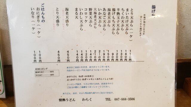 かけうどん冷1玉 190円