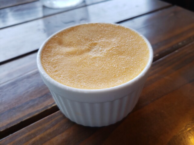 地黄卵をたっぷり使用し仕上げた自家製黄金クレームブリュレ 450円