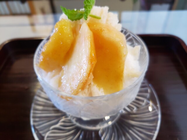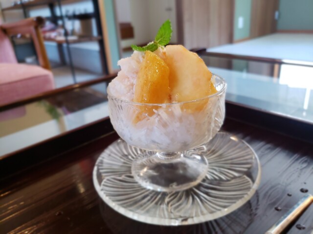 桃の味のかき氷に