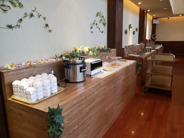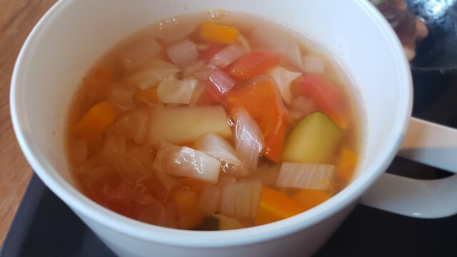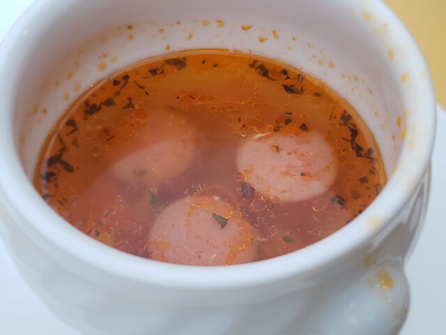ライスとスープを入れてもらったら席に着く